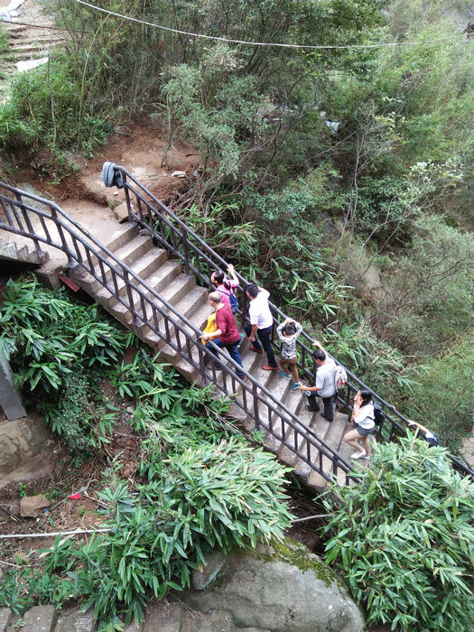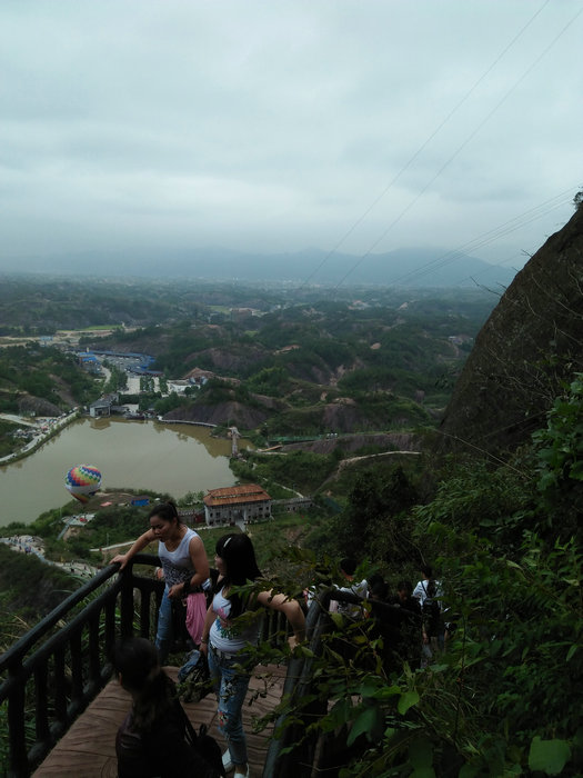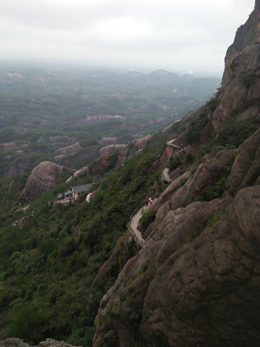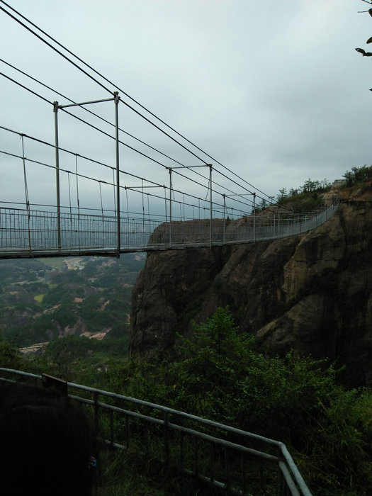 天有點熱,山很陡峭,好不容易爬上山頂,一座玻璃橋便“騰空”出現在懸崖之上,競有一種讓人敬畏又恐懼的感覺,周圍都是云霧,仿佛置身于仙境中!立于石牛寨山頂,放眼遠眺,是那看不盡、數不情的丹霞丘峰,那連綿起伏的白玉山峰,在陽光的映襯下閃著耀眼的光澤,宛如一尊玉佛,又猶如群牛耕耘在綠色的田野中。而在無盡的石峰世界里,還為數不盡的拔地而起的石柱,狹窄幽深的淺谷,天造地設的天生橋與洞穴,同時也有眾多似人、似物、似禽千變萬化的象形景觀。不得不嘆服大自然的鬼斧神工賜予了石牛寨無盡的變化與神!